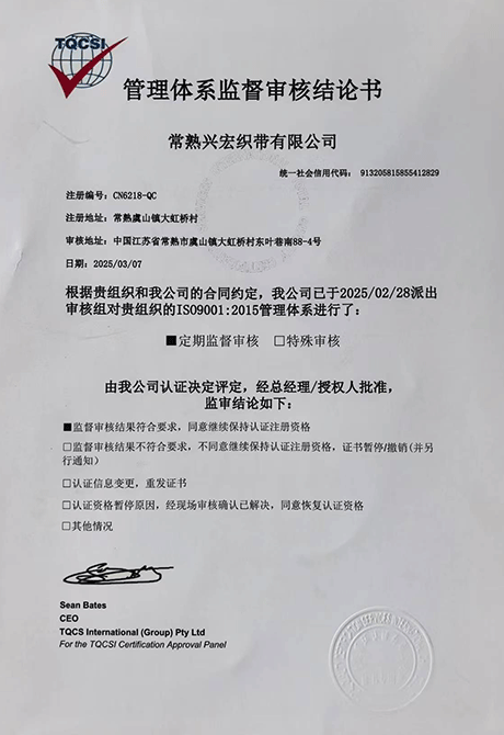 對(duì)工程負(fù)責(zé) 讓客戶(hù)滿(mǎn)意常熟興宏織帶有限公司