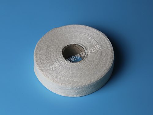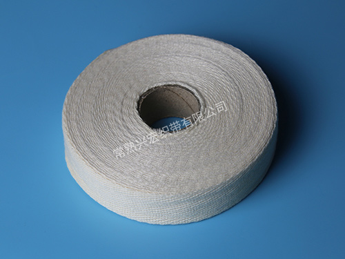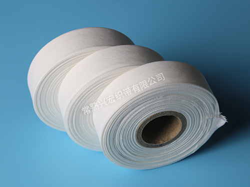 該產(chǎn)品系用電清滌棉紗紡織而成,具有一定的抗拉強(qiáng)度和絕緣性,其組織采用了斜紋組織,對(duì)比平紋的帶子,組織緊密,在拉伸時(shí)不易松散。